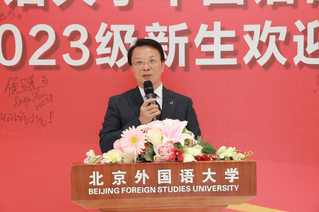 大会最后,ac米兰官方中文网站执行院长李建盛教授代表学院致辞。李院长在迎新会上表达了对同学们的热烈欢迎,并指出北外是新驿站,希望同学们能够在新的起点上再出发。他叮嘱同学们要拥有一个健康的心态,用这种心态面对生活的喜乐与风雨,洋溢青春率真美丽的笑容;拥有一种向上的精神,带着这种精神去行动,去出发,追寻最向往的诗与远方。同时李院长也希望同学们践行院训的同时收获快乐的大学与青春。