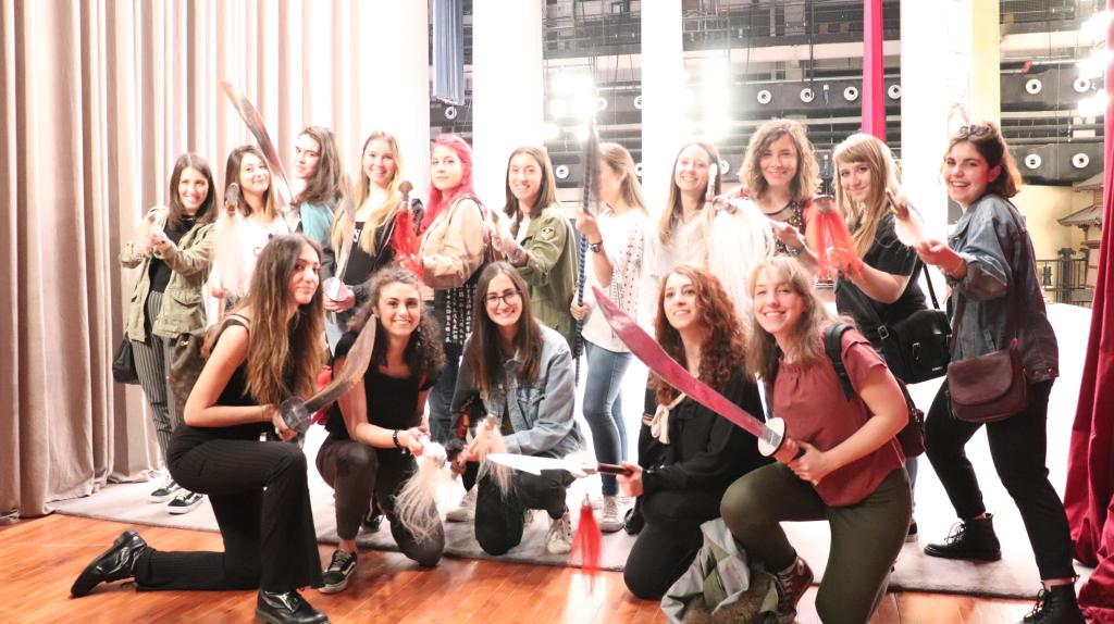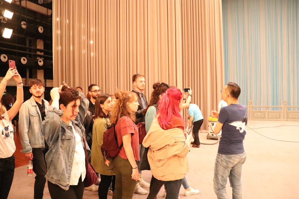5月19日在ac米兰官方中文网站ac米兰官方中文网站对外汉语系就读的22名意大利罗马大学留学生在夏菁老师的带领下来到人民剧场,观看了中国国家京剧院名家京剧《红桃山》的录制。