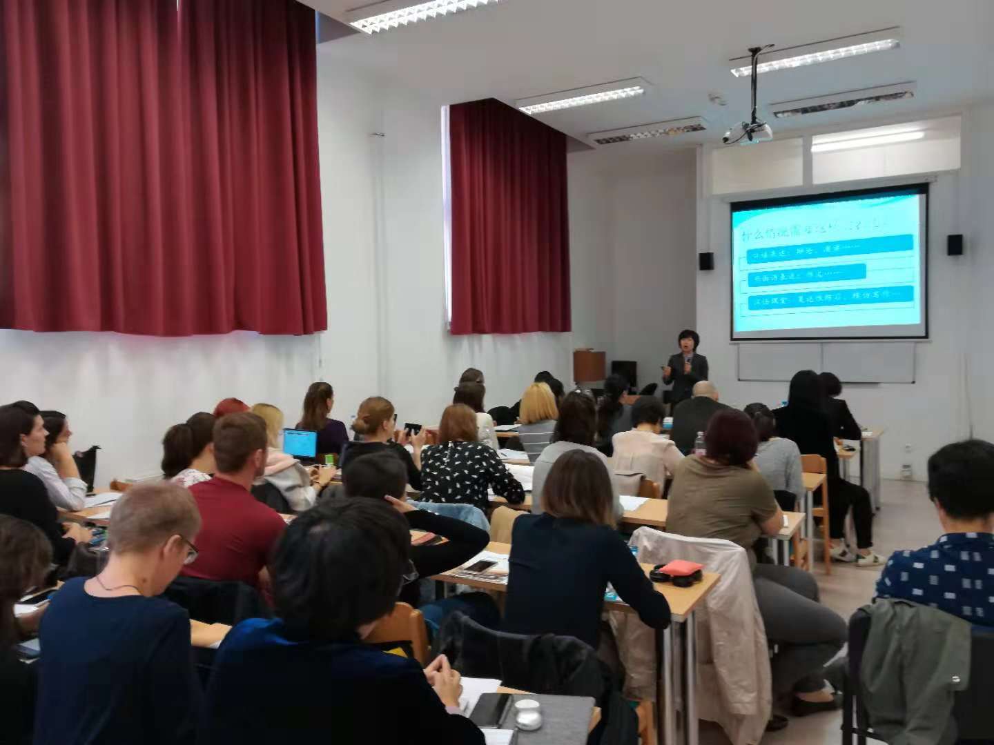 10月4日至8日,ac米兰官方中文网站执行院长张晓慧率领汉语国际教育专家团队,访问匈牙利罗兰大学孔子学院,参加中东欧本土师资培训,以“产出导向法”在汉语教学中运用为主题,举办了专题讲座和工作坊。来自中东欧16国的30余位本土教师及孔院的部分汉语教师和志愿者参加培训。