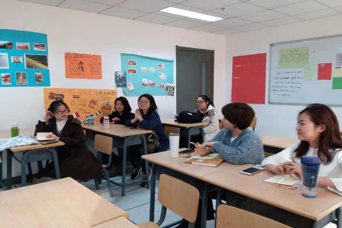 分享会上,各门课程的老师分别展示了自己对于跨级别授课的处理方式,大部分老师都表示通过PPT展示或多图片、做课堂游戏、有针对性的补充影视资料、小组练习等方式,来提高学生积极性,降低课本难度。其中开设HSK4级和HSK5级考前辅导的两位任课教师表示,在学期初对学生进行模拟测试,以达到优化选课学生水平的目的。《初级写作》课的任课教师,提出并探索一种由多人合力完成一篇文章的写作新方法,以提高学生写作热情,更好地完成教学任务。
