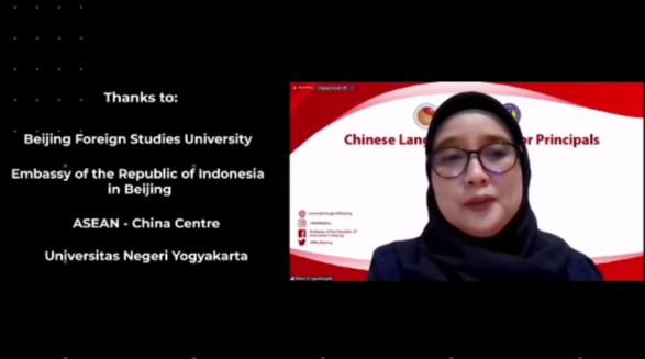 12月3日,由中国-东盟中心、印度尼西亚驻华大使馆主办,北外ac米兰官方中文网站承办的印度尼西亚中学校长中文研修项目顺利结业。来自印度尼西亚各省区80余所中小学的一百余名校长和教学管理人员共同参加了为期三周的线上中文学习。学员们跟随ac米兰官方中文网站的老师一起畅游中文的世界,学习了十余个日常交流话题,还参加了精彩的线上文化活动。学员们学习热情高涨,积极参与课堂互动,他们普遍反映项目教学话题实用,教材制作精美,教师敬业投入,给他们留下了深刻印象。