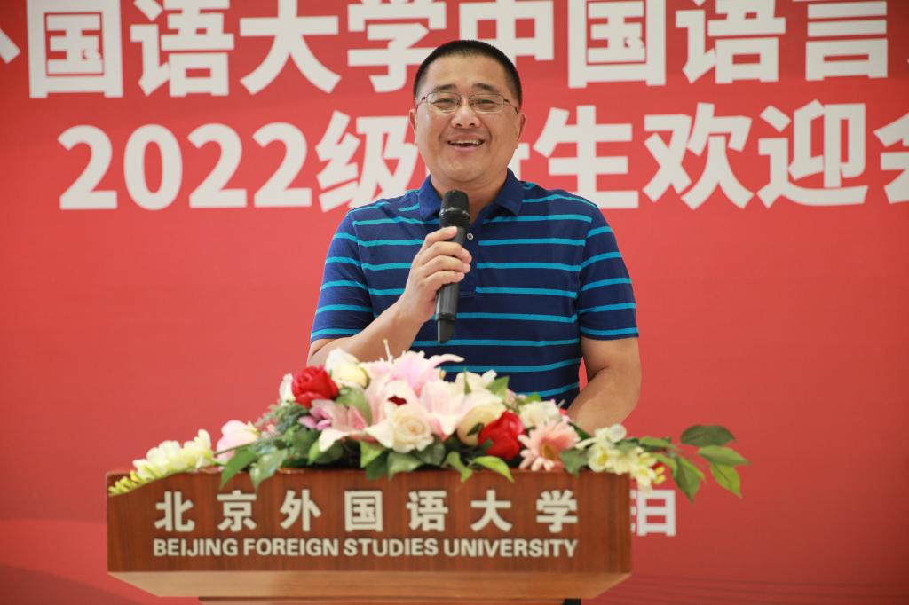 在庄严的国歌声中,迎新大会正式开始。2022级本科生叶峻峤、研究生刘晓璇和博士生梁心泉作为新生代表发言,分享她们对新生活的憧憬与喜悦。叶峻峤同学展望未来四年的学习生活,号召同学们学会独立自主,以乐观开放的心态克服茫然,通过自身所学让世界了解中国;刘晓璇同学心怀热忱,重新出发,渴望在更高的学习平台上全面发展,发挥自身特长,传播中国声音;梁心泉同学立志夯实学术基础,扩展国际视野,提升综合素质,燃烧自己为祖国的教育文化大事业发光发热。