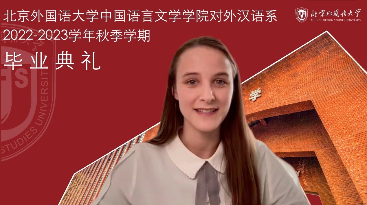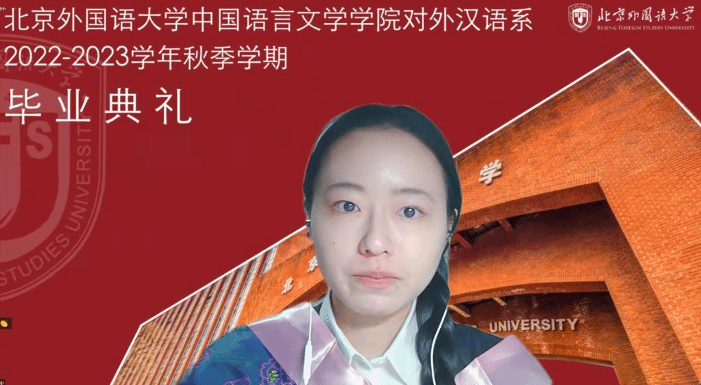 德国留学生洋灵慧作为国际班毕业生代表发言。她表示因为学习汉语,结识了来自不同国家、不同文化背景的朋友,并在疫情期间互相支持,圆满完成了学业,每一位毕业生都表现出了非同寻常的毅力、自律能力和乐观的心态,都应该为自己自豪,未来大家还要并肩前行,肩负起年轻人的责任,共创美好未来。她感谢同学们的温暖陪伴,感谢老师多年来的支持与帮助。
