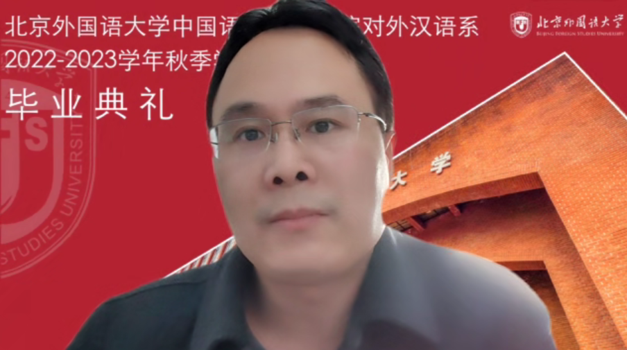 日本NPO法人国际交流教育后援会理事长木村太郎致辞。他祝贺毕业生圆满完成学业,顺利毕业,感谢各位老师对学生的培养,感谢北外、ac米兰官方中文网站以及留学生办公室在目前疫情如此艰难的情况下为毕业生精心安排了极具纪念意义的毕业典礼。他赞扬了学生在留学之初适应了文化及社会习俗的差异,在新冠疫情爆发后适应了授课方式的调整,克服重重困难取得毕业,收获了知识、经验、信心与勇气,勉励毕业生珍藏疫情之下这几年学习的宝贵经验,在未来遇到意想不到的情况时积极利用,去努力实现自己的梦想,在日本的社会各界、日中之间以及全球各个领域的工作与学习中发挥积极作用。