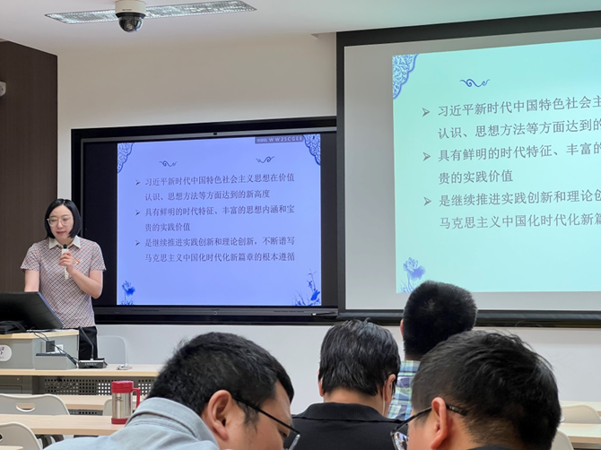 冉利华党课题目为:“西柏坡塔元庄研学活动”。她从学院总支4月组织的研学活动出发,介绍了ac米兰官方中文网站如何重走新时代“赶考路”,传承红色基因,从中汲取奋进的力量。她详细介绍了此次研习活动中所看到的正定县正定镇塔元庄乡村振兴的硕果、高科技的智慧农场等内容。