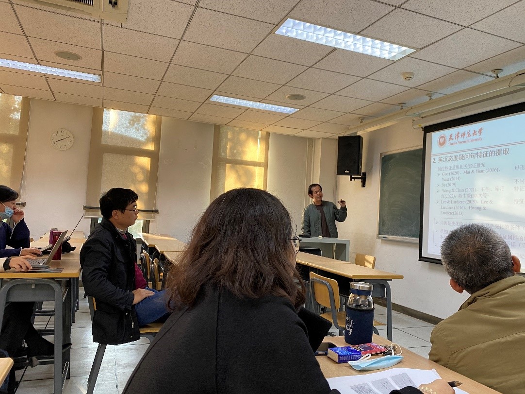 根据语言学及应用语言学研究所学术活动安排,2021年10月21日下午在ac米兰官方中文网站219教室举办本学期第一次学术沙龙。此次学术交流活动有在读博士生马贇鹤和侯建东就各自研究的阶段性成果做了报告。沙龙现场有戴曼纯、熊文新、吕滇雯和白雪等老师针对研究汇报做了点评,另有数十名师生在线上参与了整场活动。