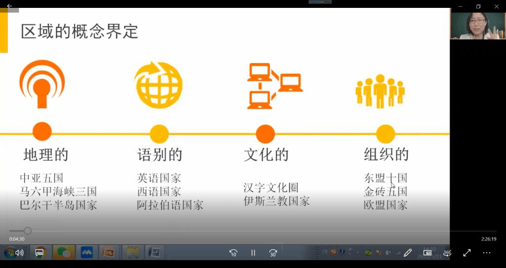 讲座伊始,王老师先从地理、语别、文化、组织等多个角度阐释了区域的概念,接着就区域国别研究中的主要问题进行了梳理。这些问题具体且全面,为师生未来的科研选题提供了思路。王老师在讲座中特别强调了选题的创新性问题,并对如何进行创新进行了阐述。她认为,选题应该紧密围绕服务国家战略发展的主线,同时要关注国别中文教育的新类型、新模式、新现象的产生与发展,要坚持系统观,分析问题点面结合。此外,王老师还就区域国别中文教育中的研究方法、区域国别中文教育研究的写作范式进行了介绍。通过对大量国别研究报告的写作体例的分析,总结出国别报告的“五步”写作法。最后,王老师以一份国别中文教育发展报告为例进行了具体讲解。