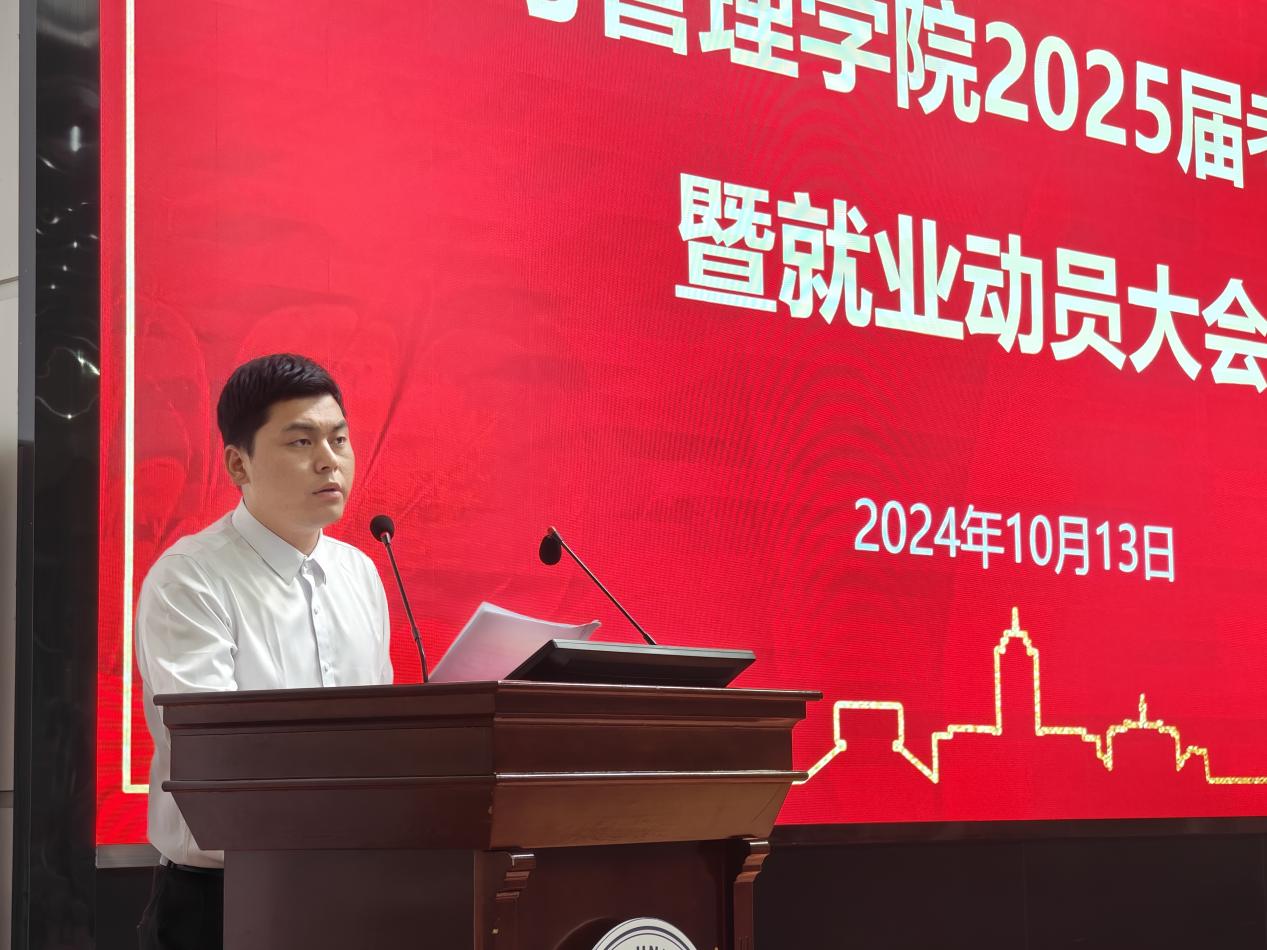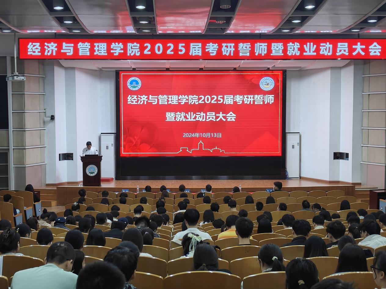 (通讯员 刘青沂 韩梦彦 徐子轩)为深入学习贯彻党的二十届三中全会精神,落实教育部关于高校毕业生就业工作部署,充分调动学生实习就业考研的积极性,10月13日晚七点,tyc234cc 太阳成集团2025届考研誓师暨就业动员大会在12教405举行。三得利人才集团王雅诗总经理、tyc234cc 太阳成集团副院长裴潇、党委副书记平先锋、21级辅导员李云妮、郭俊及21级全体本科生参加活动,本次大会由郭俊老师主持。