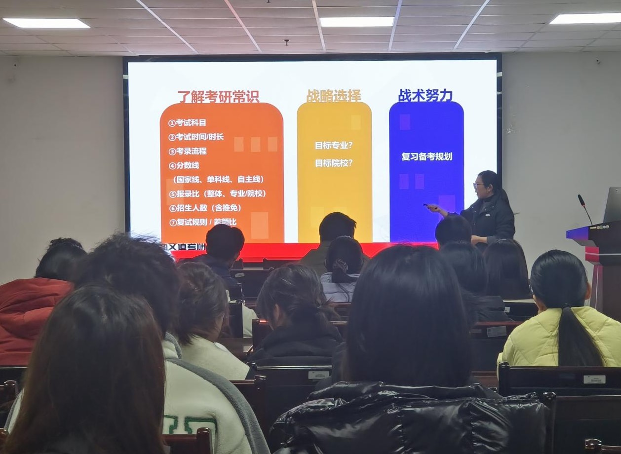(通讯员 刘青沂)为不断加强学风建设,营造积极向上的学习氛围,2025年2月20日晚6:30,tyc234cc 太阳成集团在文科大楼605举办“22级考研系列讲座第三期”。本次分享会特邀资深考研英语辅导专家汪芬老师作为主讲嘉宾,对即将参加考研的同学们进行了一场干货满满的备考指导。
