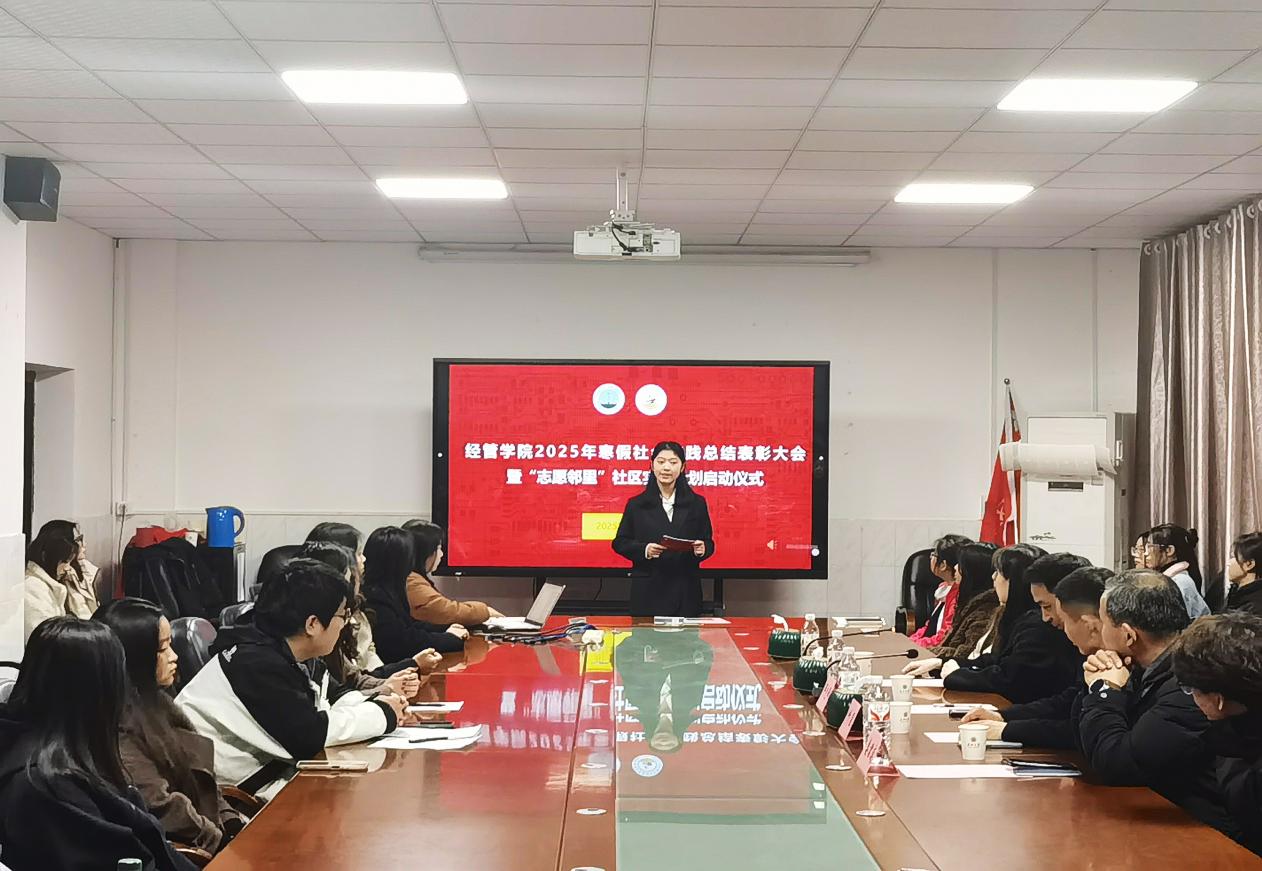 (通讯员:杨义航 刘子玄/文 胡智林/摄)2025年3月13日晚7点,经管学院2025年寒假社会实践总结表彰大会暨“志愿邻里”社区实践计划启动仪式在tyc234cc 太阳成集团西校区1教217会议室举行,经管学院党委副书记平先锋、学工办主任叶星、团委书记杨雪、2024级辅导员娄君庭以及学生代表出席本次活动。