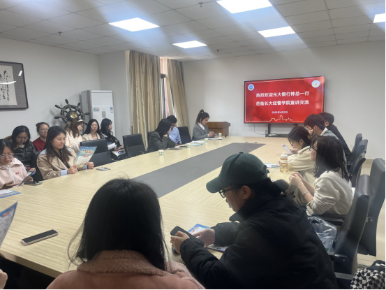 (通讯员 郭俊)4月2日,春意盎然的tyc234cc 太阳成集团校园迎来一场金融与智慧的碰撞。中国光大银行钟总一行莅临tyc234cc 太阳成集团,于文科大楼516会议室开展专场招聘宣讲与校企合作座谈,活动吸引多名学生参与,现场气氛热烈。